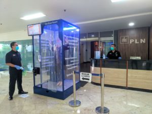 Jakarta, Ruangenergi.com – PT PLN (Persero) menyediakan bilik penyemprotan disinfektan untuk pegawai di kantor-kantor PLN. Hal ini merupakan tindakan preventif untuk mencegah penyebaran virus corona