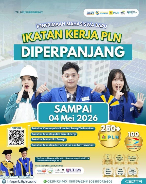 Jakarta, ruangenergi.com – Institut Teknologi PLN (ITPLN) resmi memperpanjang masa pendaftaran mahasiswa baru jalur ikatan kerja hingga 4 Mei 2026. Perpanjangan masa pendaftaran ini membuka