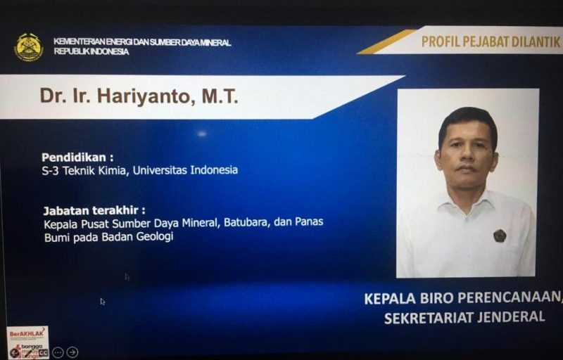 Hariyanto sebelumnya menduduki jabatan sebagai Kepala Pusat Sumber Daya Mineral, Batubara, dan Panas Bumi.