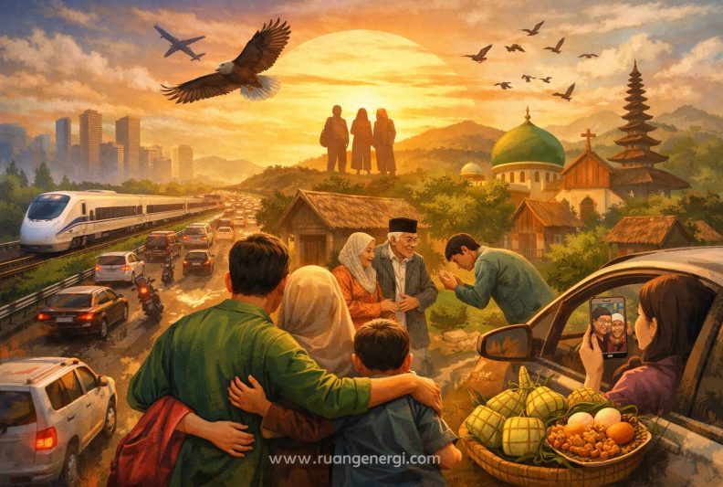 Jakarta Pusat, Jakarta, ruangenergi.com-Tradisi mudik selalu menjadi salah satu pergerakan manusia terbesar di negeri ini. Setiap tahun, jutaan orang meninggalkan kota-kota besar untuk kembali ke kampung halaman, membawa rindu, beban hidup, dan harapan baru. Namun, lebih dari sekadar ritual tahunan, mudik adalah cermin yang memantulkan siapa kita sebagai bangsa.